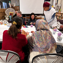 Through culturally responsive and trauma-informed activities, participants are guided on a journey of healing, growth, and self-discovery. The program highlights the incredible assets refugees bring with them and creates spaces of community and connection. Creativity promotes resilience and problem-solving in new and original ways. Adults explore their imagination while learning English vocabulary, connecting with peers, and nurturing their socio-emotional growth. The preschool children simultaneously develop their native language and English skills through interactive play. They learn to cooperate with peers while building age-appropriate abilities like communication, problem-solving, and social skills while being exposed to and practicing both languages in a supportive environment.